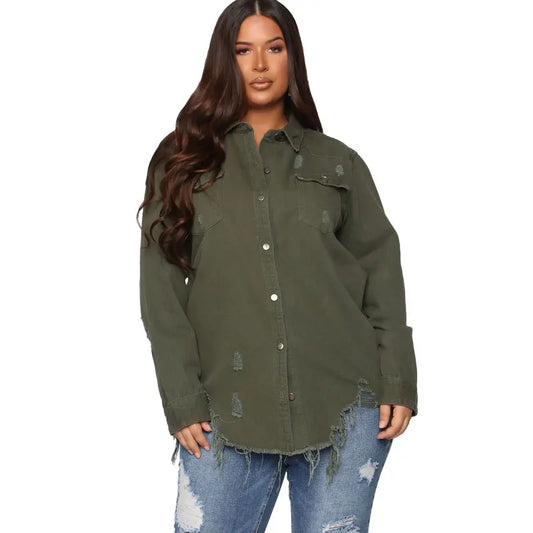 Unique Women's Fashion: Explore our casual plus-size collection, featuring the stylish loose-hole washed Ripped denim jacket for a trendy look.