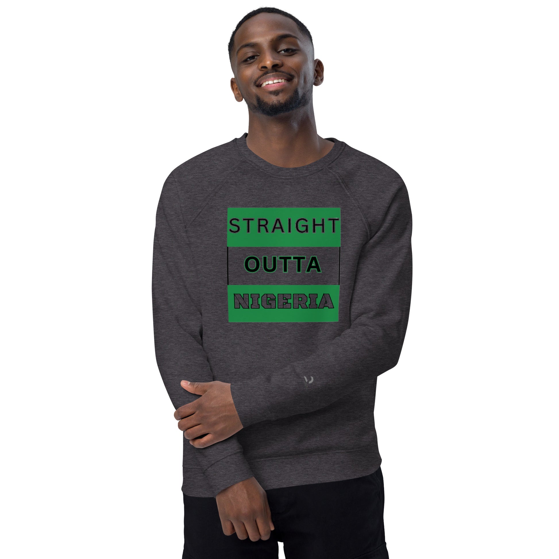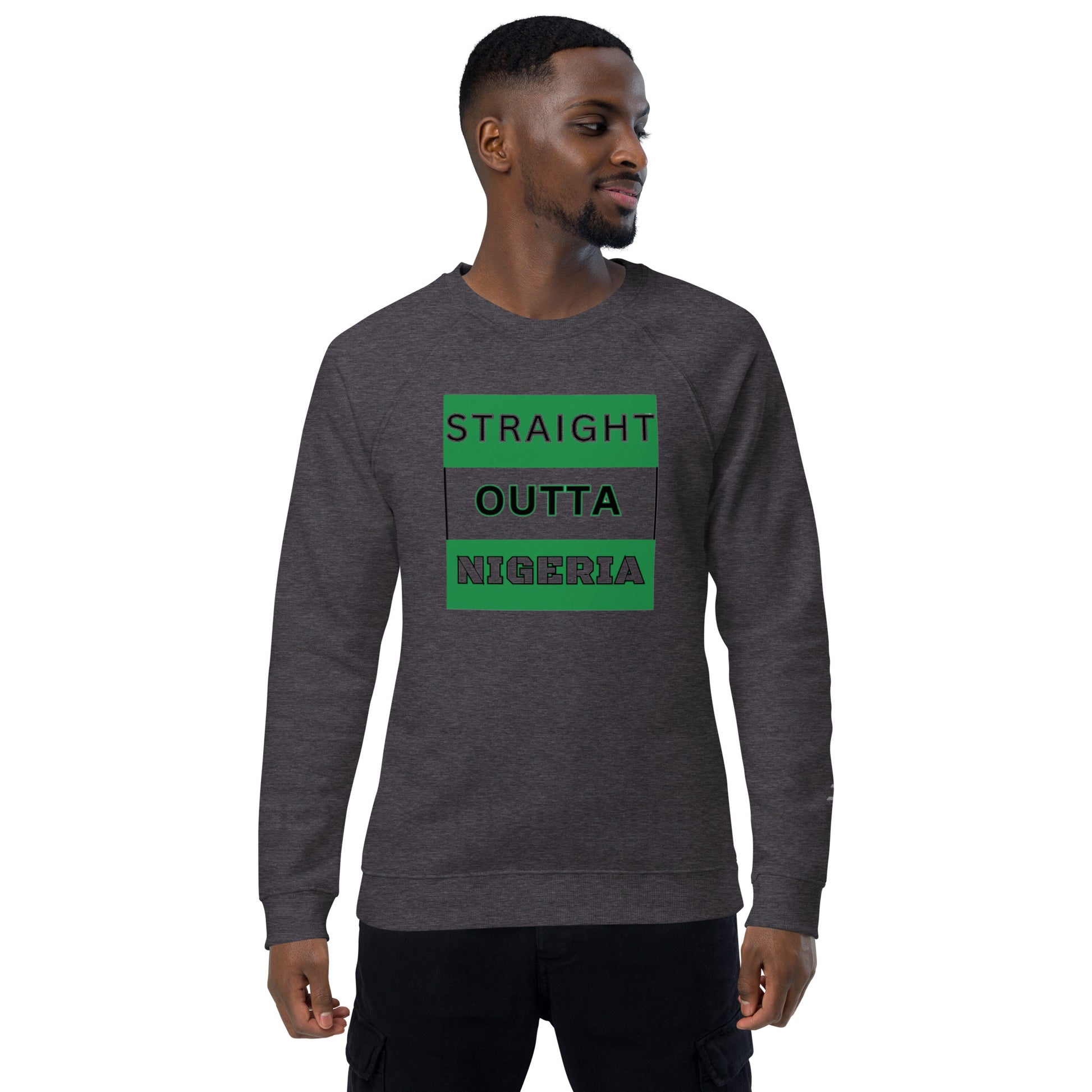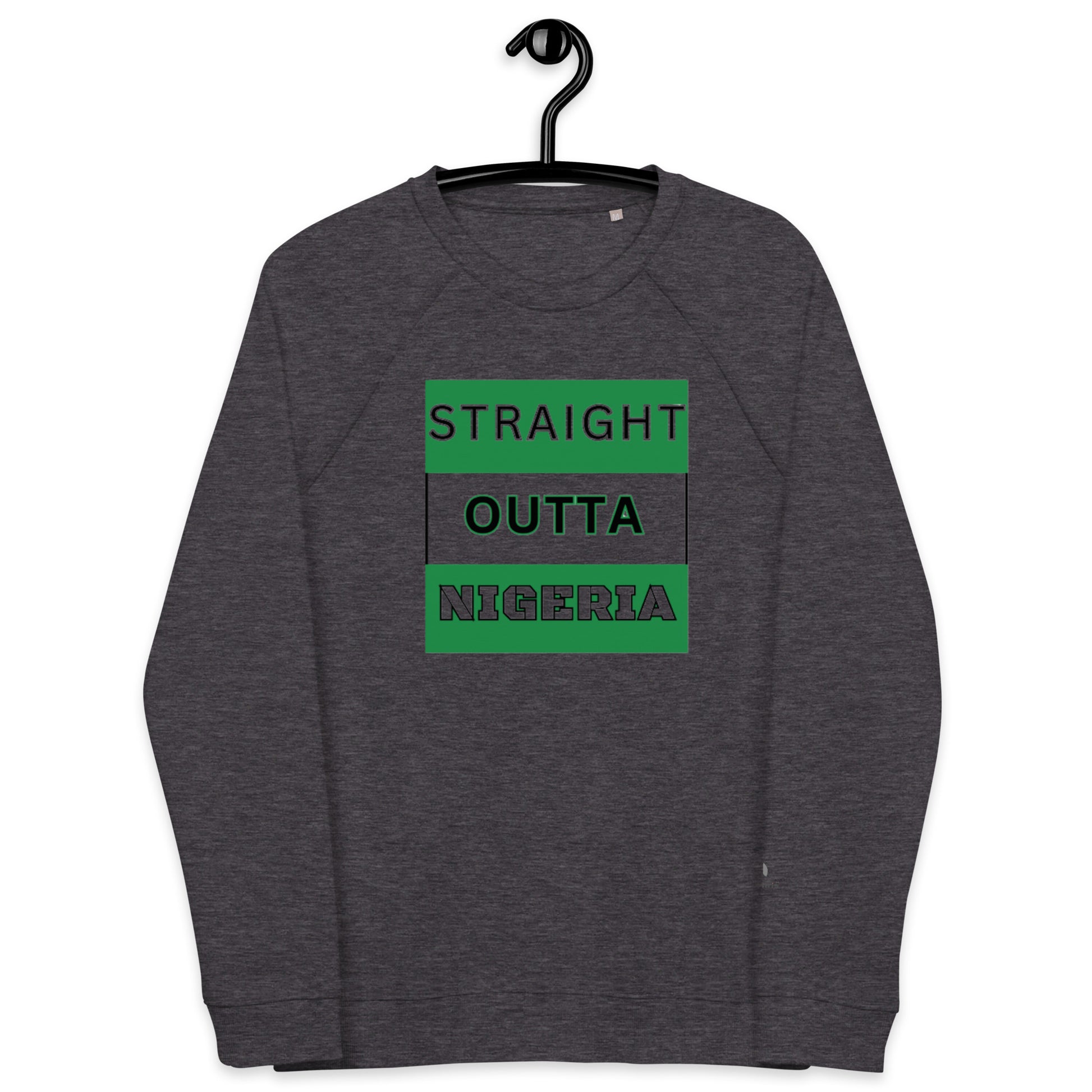 "STRAIGHT OUTTA NIGERIA" Unisex organic raglan sweatshirt