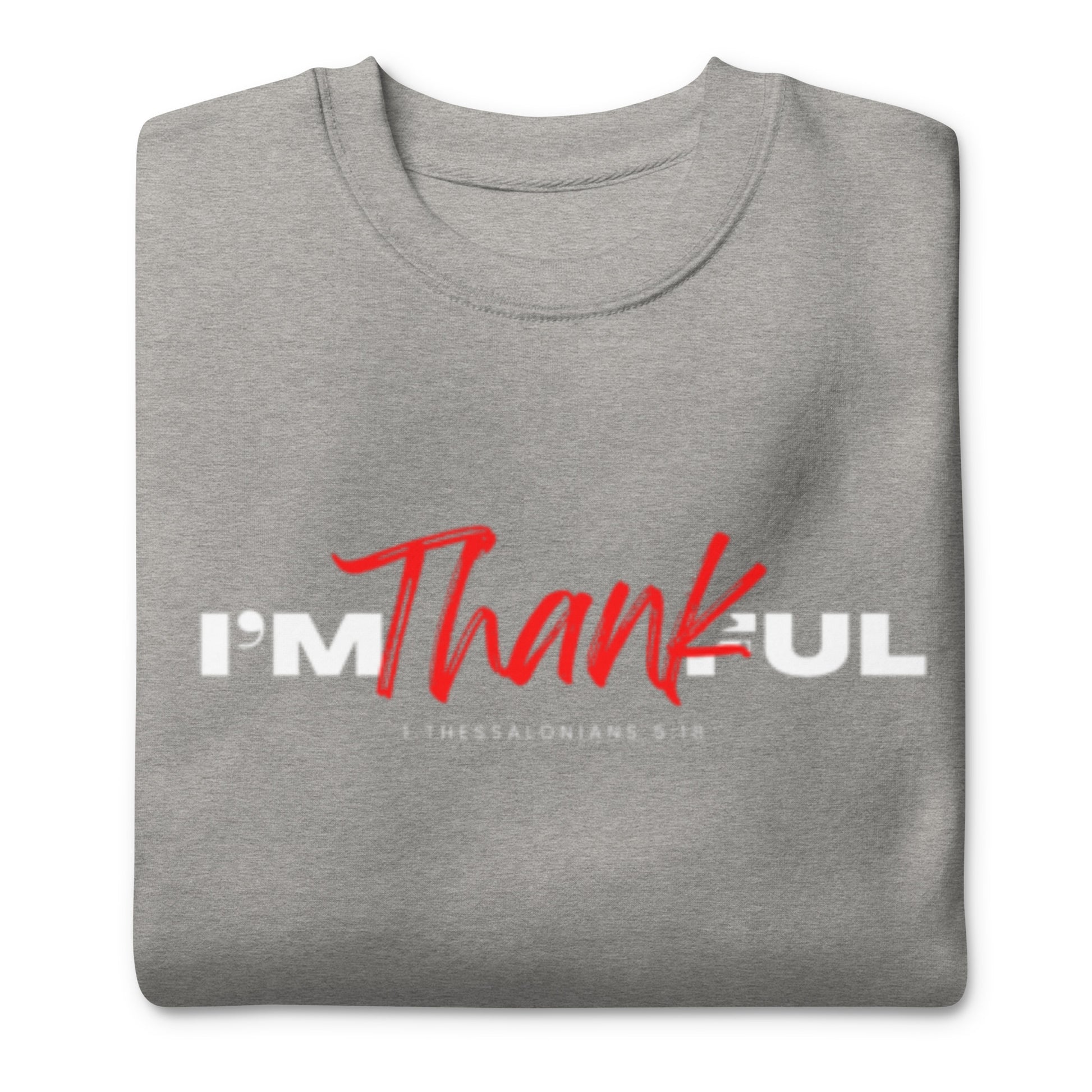 Elevate your style with the "I'M Thankful" Unisex Premium Sweatshirt. This sweatshirt features a classic silhouette with a ribbed crew neck, long sleeve cuffs, and a flat hem. Whether you choose to layer it up or wear it as a standalone piece, it brings a contemporary streetwear vibe to your wardrobe. The soft fleece interior and comfortable fit ensure it'll quickly become your go-to everyday sweater.