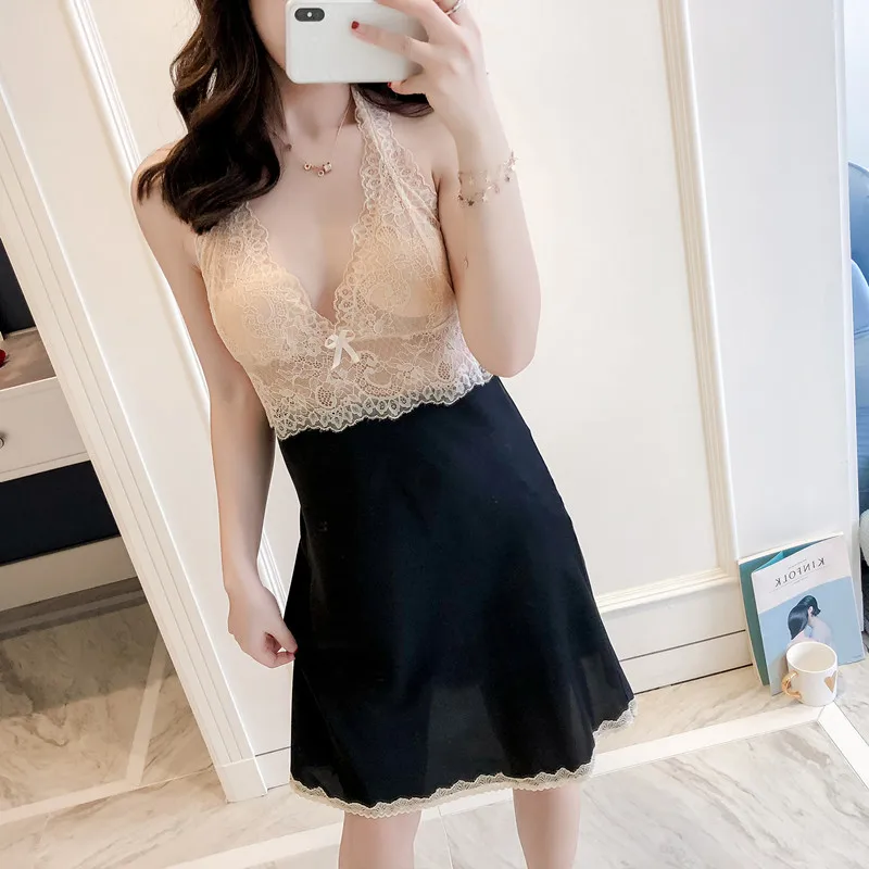 Lace silk sexy babydoll nightwear 2-piece pajamas set